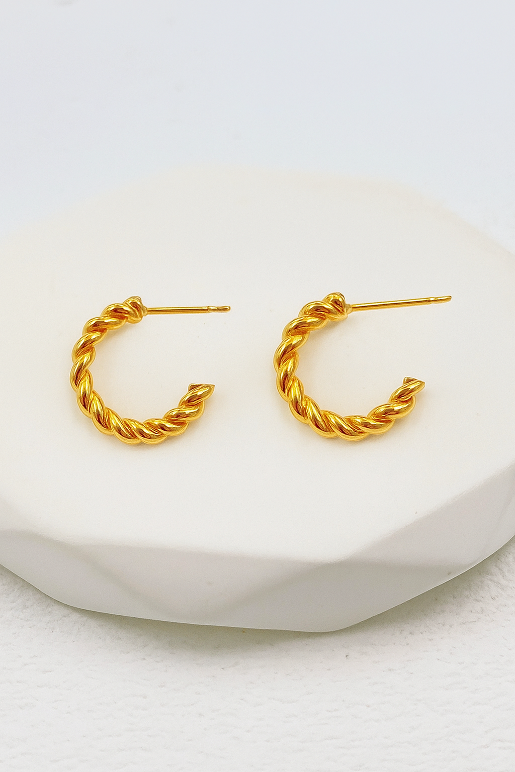 Les boucles d’oreilles Céloria allient raffinement et modernité avec leur design torsadé au fini doré éclatant. Légères et sophistiquées, elles subliment chaque mouvement avec une touche de lumière.