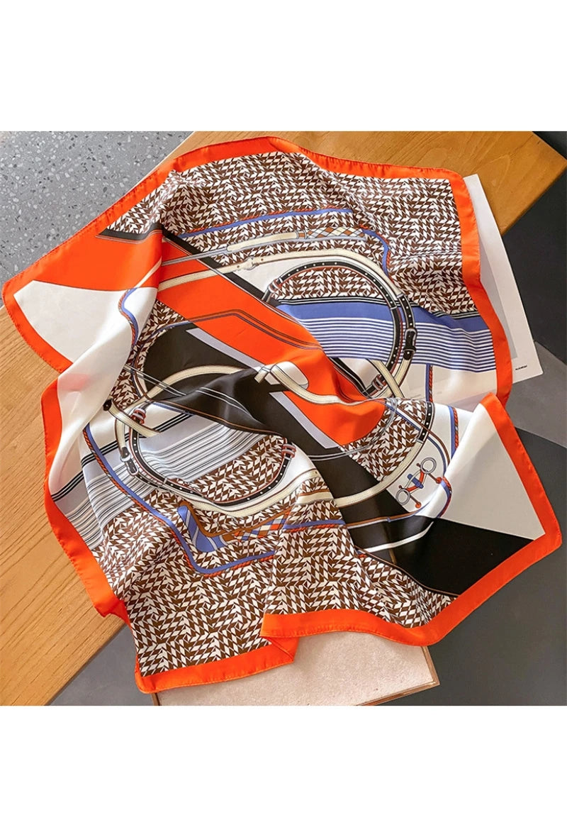 Ce foulard en soie incarne l’alliance parfaite entre audace et élégance. Avec ses teintes éclatantes d’orange tangerine, rehaussées de motifs géométriques noirs, blancs et bleus, il attire tous les regards. Sa texture soyeuse et fluide permet de le porter autour du cou, du poignet ou en accessoire de sac pour un style sophistiqué et affirmé. Un incontournable pour sublimer chaque tenue avec caractère.