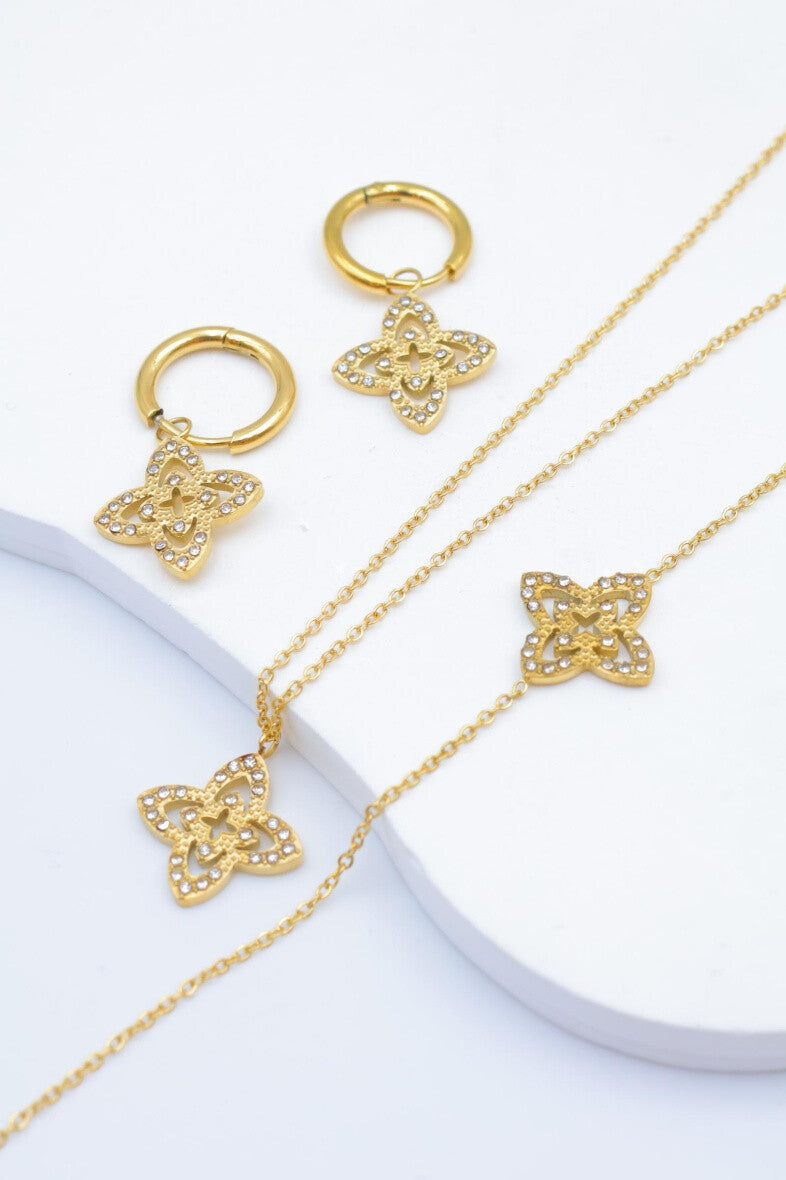 Parure “Fleur d’Or” – Acier inoxydable doré